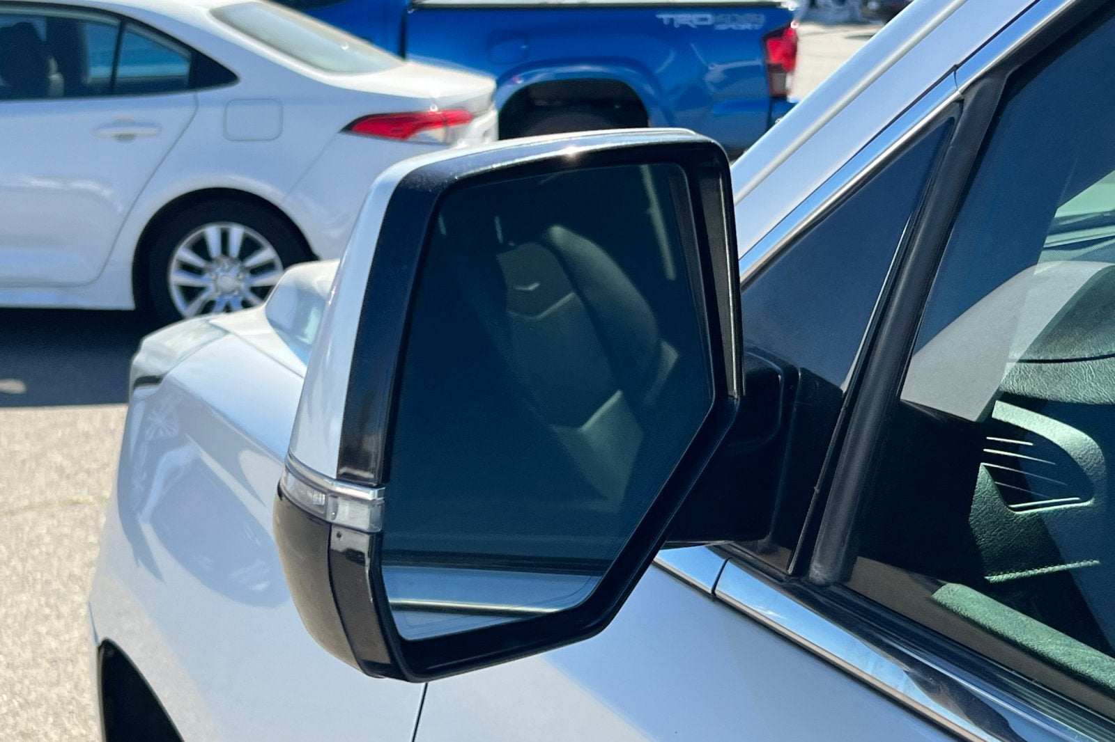 - Mirrors, outside heated power-adjustable, power-folding and driver-side auto-dimming, color-keyed with integrated turn signal indicators, ground illumination and programmable to provide curb view when in reverse