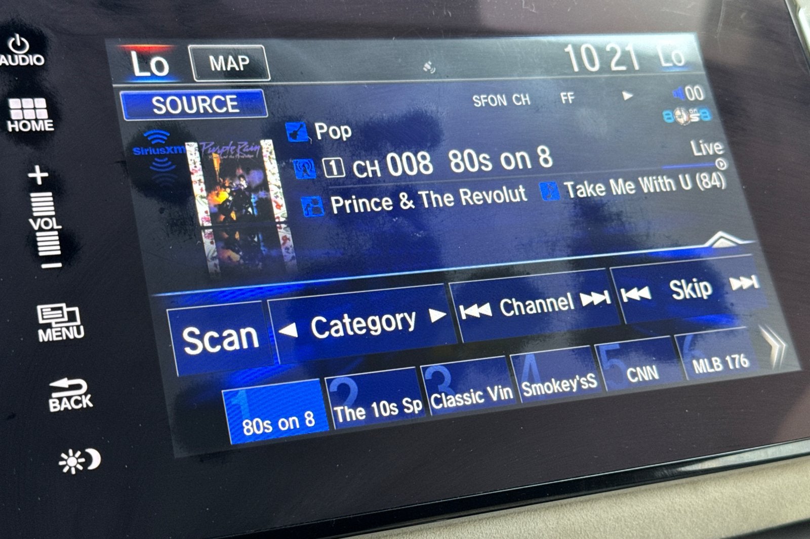 - Radio: 180-Watt AM/FM/HD/SiriusXM Audio System -inc: 8 speakers, 8" display audio w/high-resolution WVGA (800x480) electrostatic touch-screen and customizable feature settings, HondaLink, Apple CarPlay and Android Auto integration, Bluetooth® HandsFreeLink, Bluetooth® streaming audio, SMS text message function, Radio Data System (RDS), 1.0-amp USB audio interface, 1.5-amp smartphone/audio interface and Honda Satellite-Linked Navigation System w/voice recognition and Honda HD digital traffic SiriusXM services require a subscription after any trial period. Honda HD digital traffic service is only available in the United States, except Alaska.