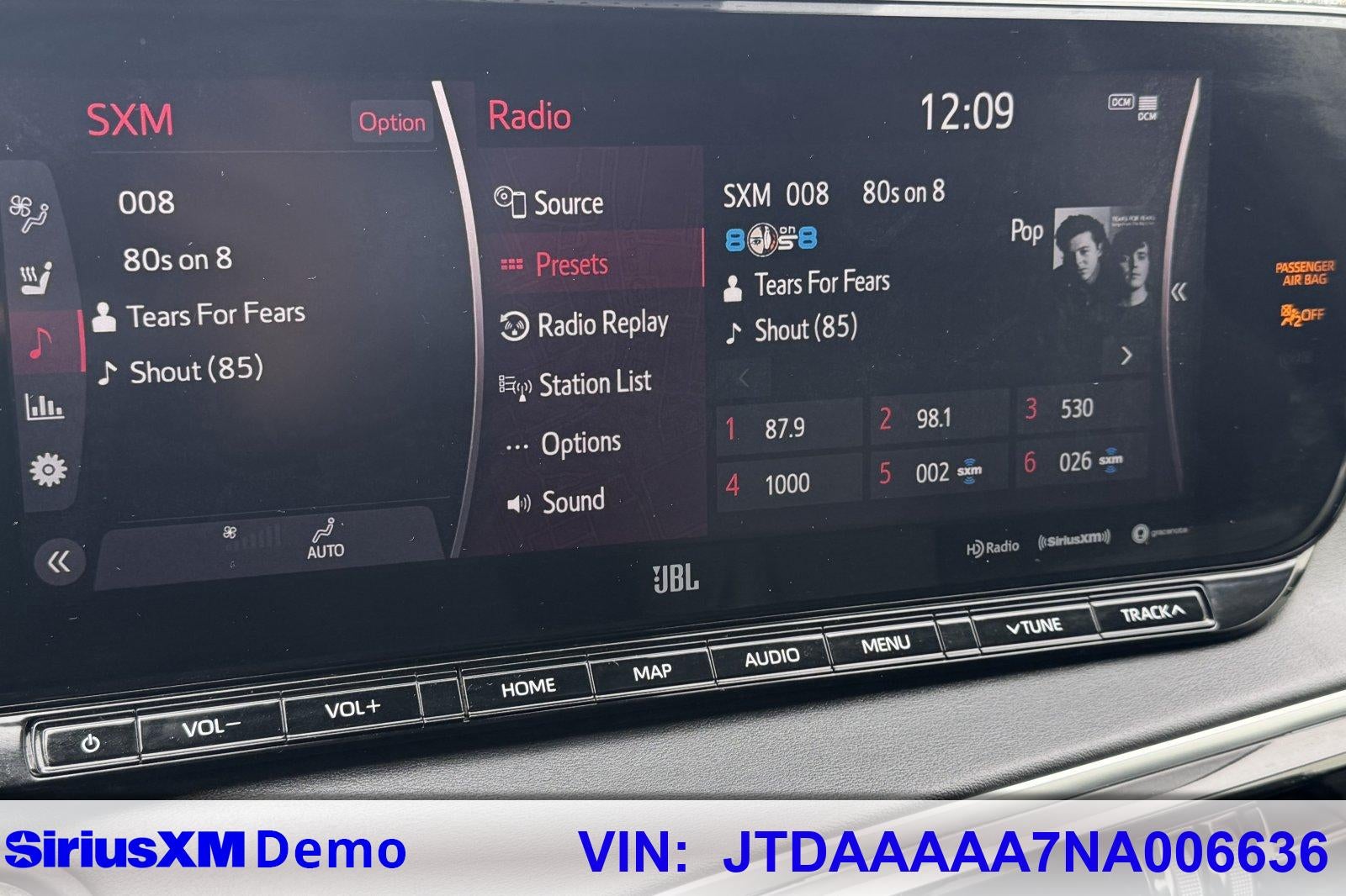 - Radio: Premium Audio -inc: Dynamic Navigation w/3-year trial, 12.3" touchscreen, 14 JBL speakers, subwoofer, amplifier, hands-free phone capability, music streaming via Bluetooth® wireless technology, Android Auto, Apple CarPlay, Amazon Alexa compatible, SiriusXM w/3-month All Access trial, See toyota.com/audio-multimedia for details, Connected Services include Safety Connect w/1-year trial, Service Connect w/10-year trial, Remote Connect w/1-year trial, Wi-Fi Connect w/up to 2GB within 3-month trial, Destination Assist w/1-year trial, See toyota.com/connected-services for details