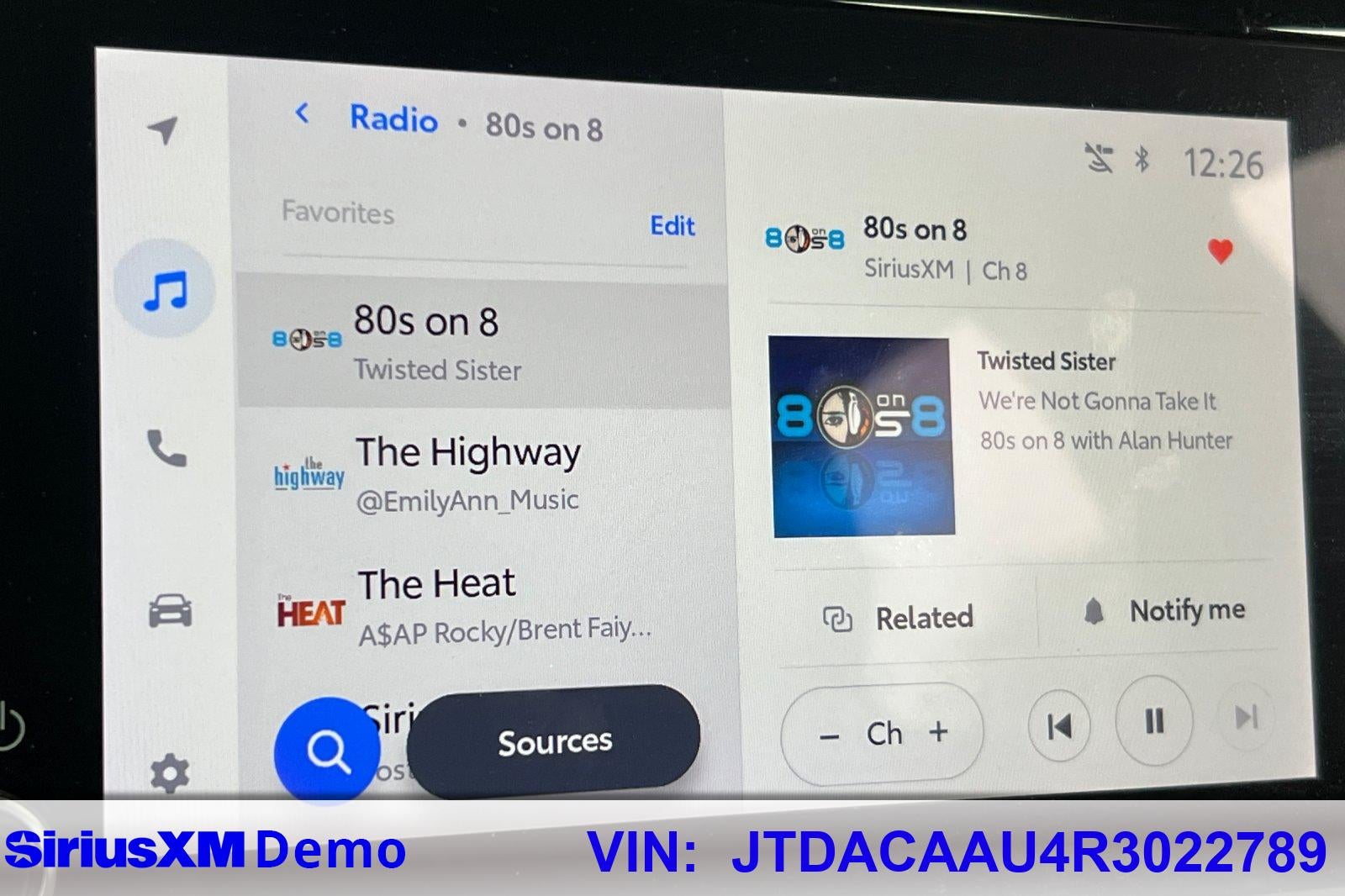 - Radio: Audio System -inc: 8" Toyota audio multimedia touchscreen, 6 speakers, wireless Apple CarPlay and AndroidAuto compatibility and SiriusXM w/3-month Platinum Plan trial subscription, See toyota.com/audio-multimedia for details