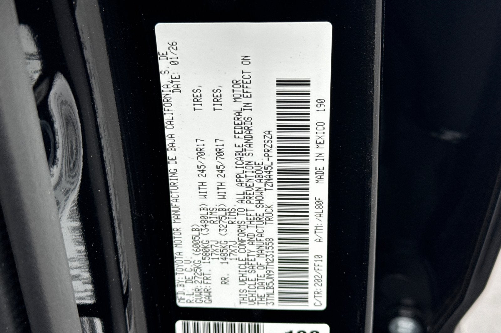 - Vehicle Name: Toyota Tacoma 4WD